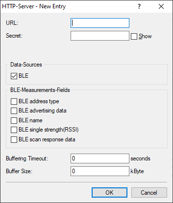 - Here you configure the types of LBS data that should be sent. Only BLE is currently available.
