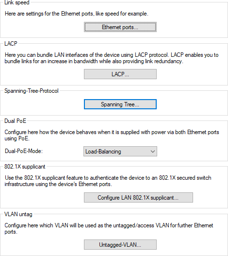 The settings for configuring the Ethernet ports of the device are located under .