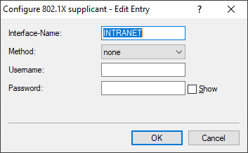 - The password to use to authenticate at the 802.1X infrastructure.