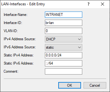 - Here you specify a VLAN ID for which the interface should be active and accessible. The default value "0" means that no VLAN is used.