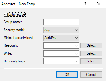 Here you collect the different values or even entire branches of the device MIB, which each user is entitled to view or change in keeping with the corresponding access rights.