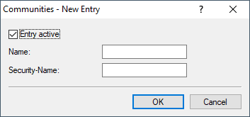 For SNMPv1 or SNMPv2c, you force the entry of login data for SNMP read-only access by disabling the public community in the list of the SNMP communities. This setting only allows information about the state of the device, current connections, reports, etc., to be read out via SNMP after the user authenticates at the device. Authorization can be conducted either with the administrator-account access credentials or an access account created for the individual SNMP community.