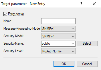 If you enable the option Send information about system events (traps) to the target addresses specified in the following table, the recipients configured under Target addresses and Target parameters will receive the corresponding information.