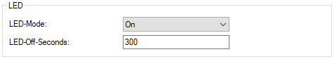 - Set a time in seconds after the device starts, after which the LED(s) of the device are switched off if the LED mode is set to Timed-Off.