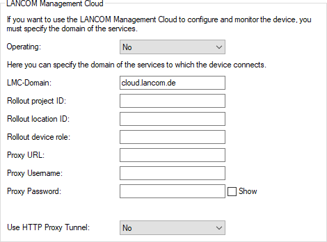 Settings that relate to the configuration and monitoring of your device via the LANCOM Management Cloud (LMC) are located under .