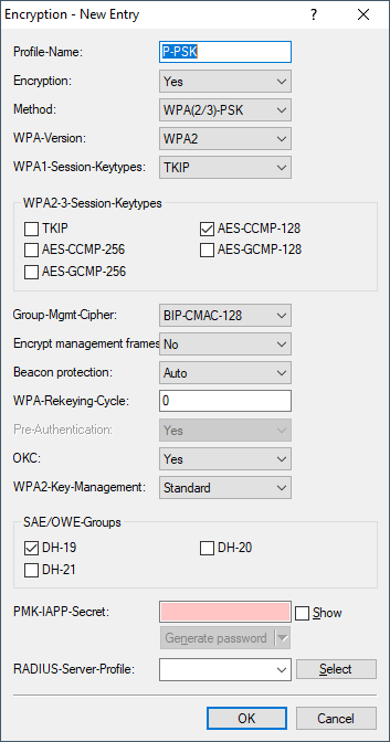 Configure here which session key type should be offered for WPA version 2 or 3. This also influences the encryption