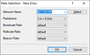 - The network or SSID to which the rates configured here should apply. The name must match with a name of a network set up in Networks.