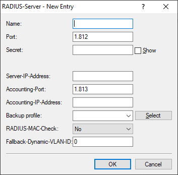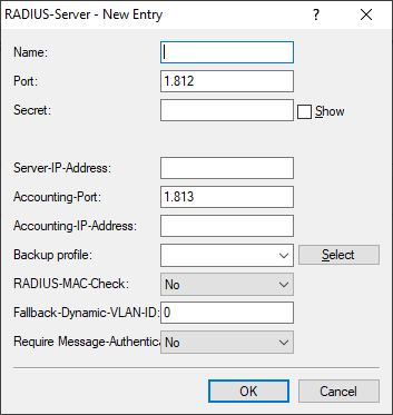 - Here you configure a backup profile, which will be used if the RADIUS server in the profile configured here cannot be reached.