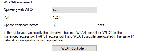- Configures user-specified WLAN controllers. This may be necessary if a WLC cannot be found via the local network (e.g. with routed connections) and also the DNS name "WLC-Address" cannot be used to inform the access point about the address of the WLC.