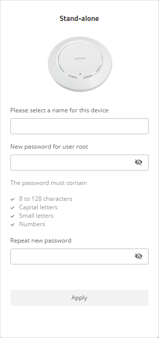 Important: The password set here is valid for the user "root". This user is also used subsequently to login to WEBconfig.