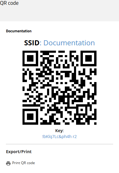 Important: QR codes cannot be used for networks secured by 802.1X as they do not use a static WLAN key (PSK).