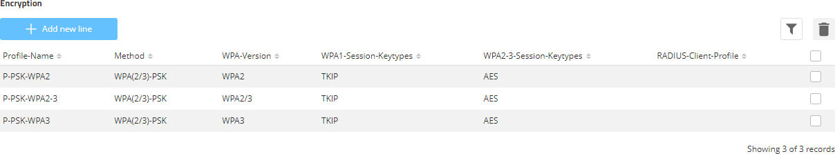 The following encryption profiles are stored by default and these can be used for the configuration of the WLAN networks.