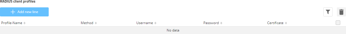 If you want to establish a client connection using 802.1X, please configure a RADIUS client profile here first.