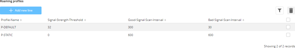 - If the signal strength falls to the specified limit, a scan is triggered directly to search for a better access point. If no better access point is available, the search continues in the specified time in seconds until a connection to an access point with a better signal strength could be connected or the signal with the connected access point has improved again.