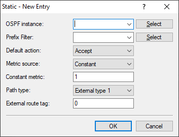 If the metric source is set to "Constant", the OSPF metric of the imported routes is set to the value Constant metric.