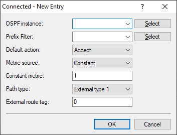 - If the metric source is set to "Constant", the OSPF metric of the imported routes is set to the value Constant metric.