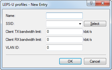 Here you can set a transmission bandwidth limit in kbps for authenticating WLAN clients. If no limit is configured here, the limitation configured in the LEPS-U profile (if any) applies. If a limit is configured in both the LEPS-U profile and for the LEPS-U user, the limit configured for the LEPS-U user applies.