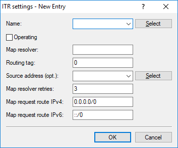 This table specifies the parameters for the role as Ingress Tunnel Router (ITR).