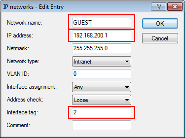 Note: Activation of the DHCP server is obligatory for the guest network and optional for the internal network. There are other ways of realizing a DHCP server for the internal network.