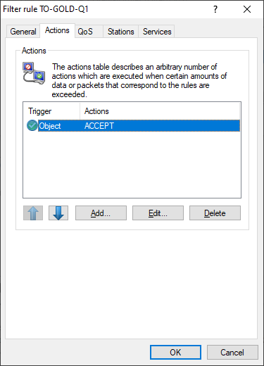 2. On the Actions tab you then add an "ACCEPT" action and remove the default "REJECT" action.