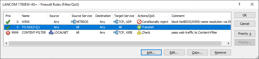 4. The result is a rule that assigns the desired packets to a queue – in this example "GOLD".