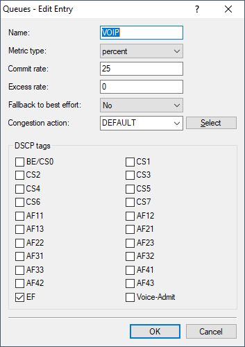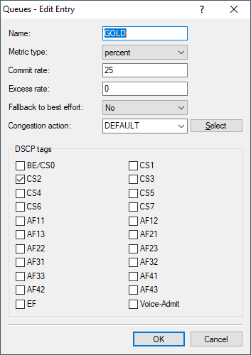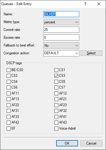 3. Create the three templates for the service classes VOIP, GOLD and SILVER. The Best Effort class does not need to be configured manually as it is present by default.
