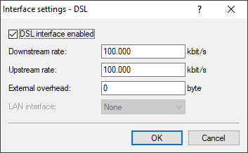 7. (Optional): Depending on the WAN interface used, the available data rate in the case of an Ethernet connection must still be configured. This is not necessary if an internal xDSL modem is used. In this case, the synchronized DSL data rate is used. Switch to the dialog Interfaces > WAN > Interface settings.