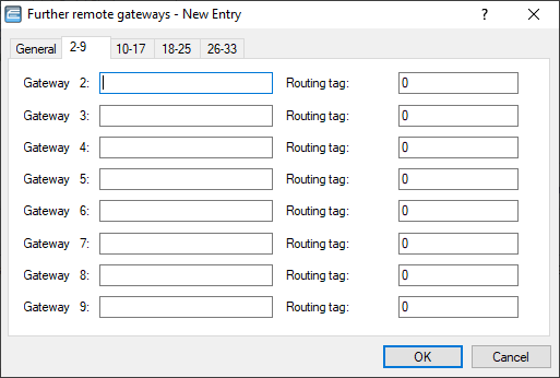 You can make three possible entries for each of the up to 32 alternative gateways: