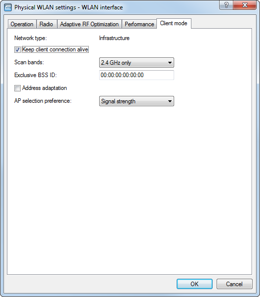 If the device is operating as a client, the tab 'Client mode' can be used for further settings that affect the behavior as a client.