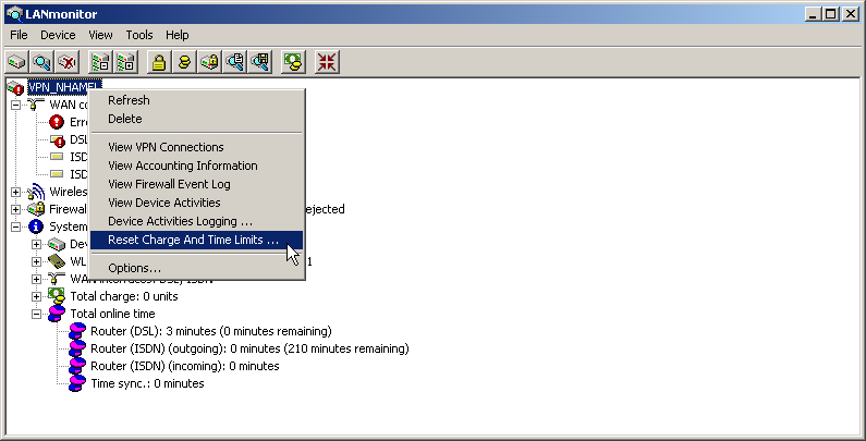 Click with the right mouse button on the error in LANmonitor and select in the menu the entry Reset Charge And Time Limit.