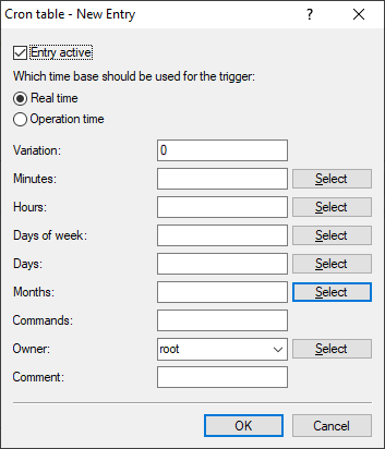 An administrator defined on the device can be selected as the owner. If an owner is specified, the CRON job commands