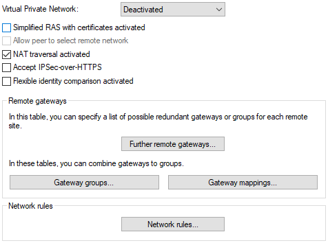 Converting internal IP addresses to the gateway's central, publicly valid IP address and converting source and target ports can lead to problems in many applications, for example where the UDP port 500 that is usually used during the IKE negotiation has been changed and the IKE can no longer be successfully completed as a result. The address change using NAT is therefore assessed by a VPN gateway as a security-critical data packet change, the VPN negotiation fails and no connection is made. In fact these problems occur, for example, when you dial in using some mobile telephone networks where the network operator's servers do not support the address conversion in combination with IPsec-based VPNs.