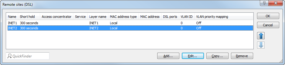 - The two DSL remotes are then assigned to a new virtual remote site 'INTERNET' in