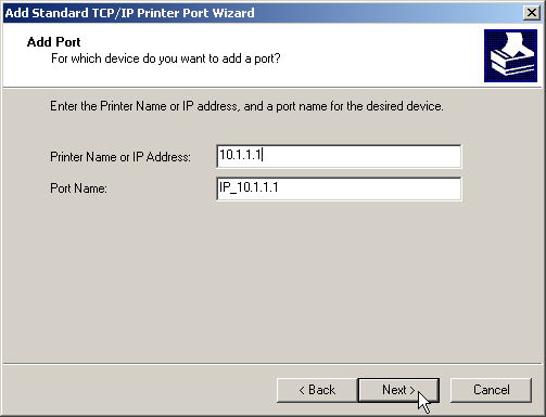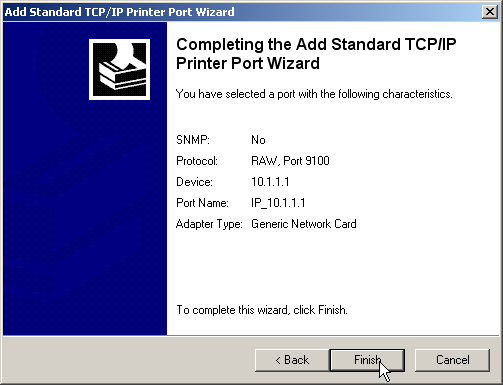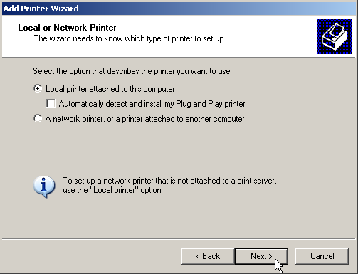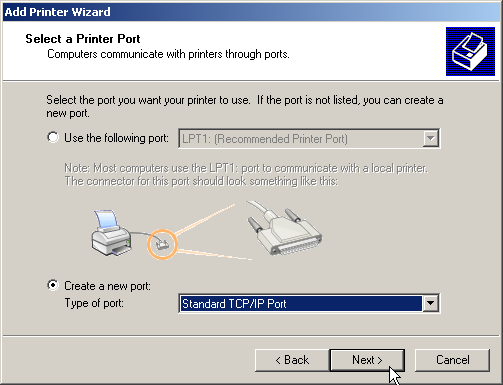 - Once the settings have been made, the printer port is set up. The Wizard now goes on with the selection of the printer driver.