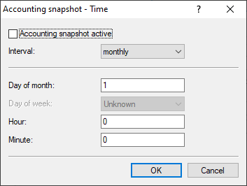 Configuring the snapshot sets the interval at which the accounting data are temporarily stored: