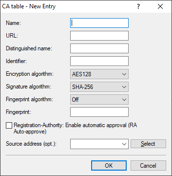 The authenticity of a received CA certificate can be checked by means of the the checksum (fingerprint) entered here (corresponding to the set CA fingerprint algorithm).