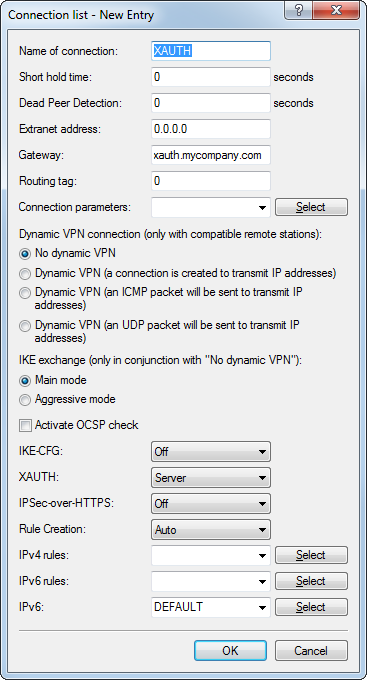 The application of the XAUTH protocol is set up separately for each VPN remote site. Only the XAUTH operating mode is specified.