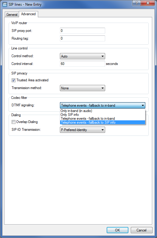 When configuring the DTMF signaling, you specify which variant is used for the transmission of the DTMF tones under :