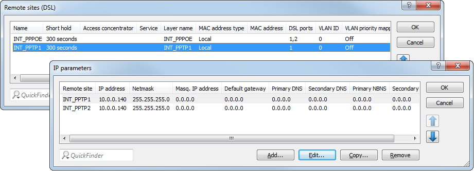 using a different DSL port. The connections are entered with the same values for the IP