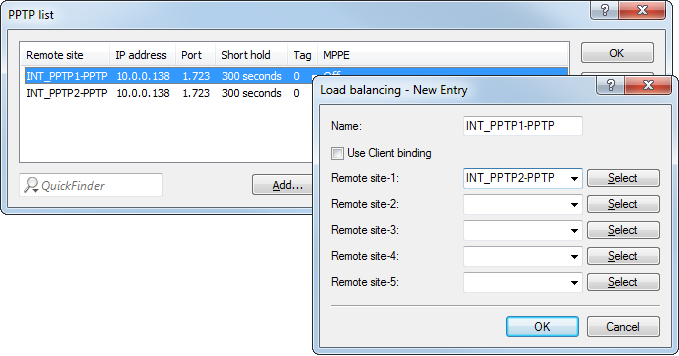 - Configure several separate PPTP connections (e.g. using the LANconfig Wizard), each