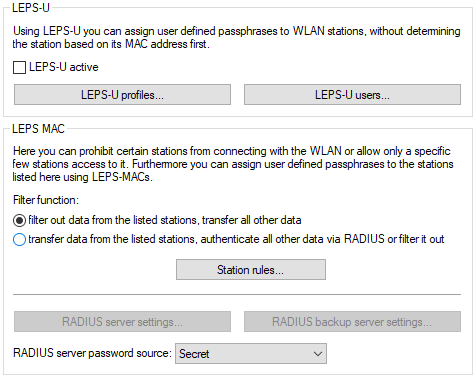 In LANconfig, the client that can login to the WLAN are configured under .