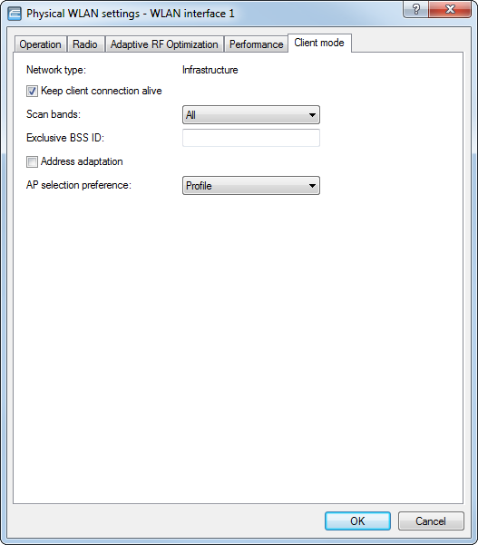 LANconfig: Wireless LAN > General > Physical WLAN settings > Client mode