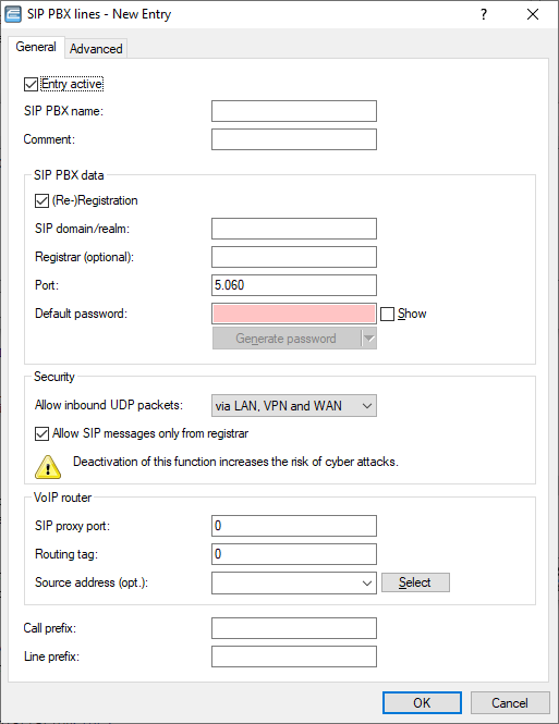 - This activates the (repeated) registration of the SIP PBX line. With (re-)registration activated, it is also possible to operate line monitoring.