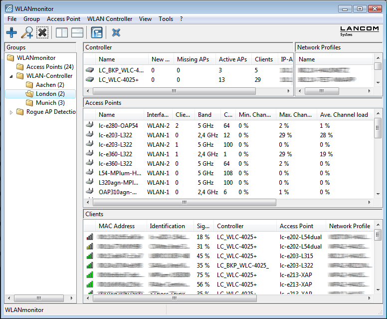 The loads on the various channels used by each AP which is managed by a WLC are displayed as three values, the minimum, maximum and average channel load. The values displayed are measured every three minutes. Consequently, the first values are displayed after three minutes at the earliest.
