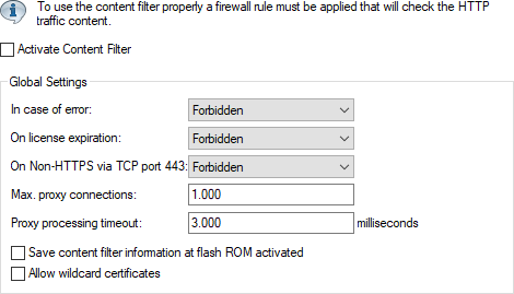 - If enabled, this option stores content filter information in the device’s Flash ROM.