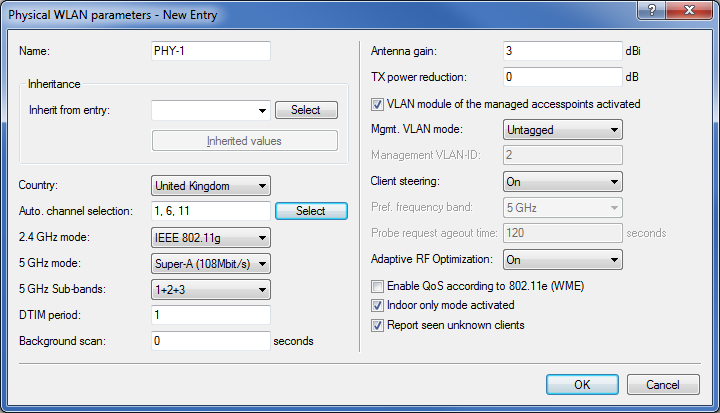 • LANconfig: WLAN-Controller > Profiles > Physical WLAN parameters