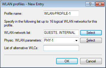 The two logical WLAN networks and the set of physical parameters defined earlier are collected into this WLAN profile.