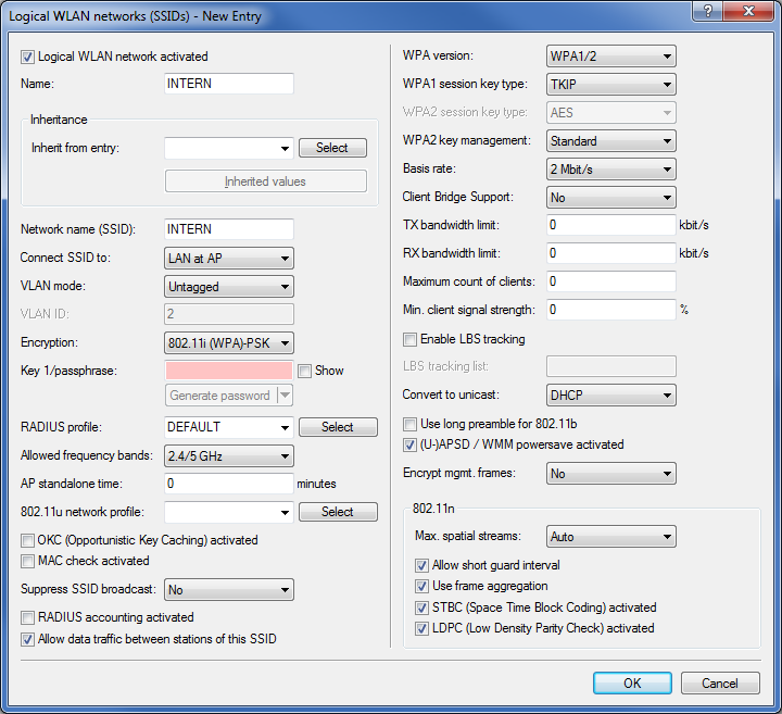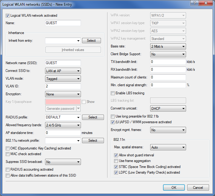 • LANconfig: WLAN Controller > Profiles > Logical WLAN networks (SSIDs)