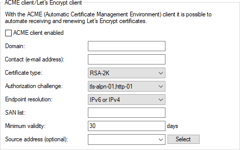- ACME client enabled
