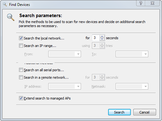 - Search in a remote network If you wish to search in a remote network you must specify its address and the relevant network mask.